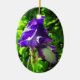 O ornamento da árvore de Natal com um lembrete de Summer. Uma íris púrpura florescendo debaixo de uma macieira.
