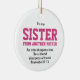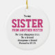 IRMÃ Cristã DE OUTRO Ornamento MAIS MISTERIOR, com tipografia audaciosa não-cinzenta em cor-de-rosa giro. Há a popular citação IRMÃ DE OUTRO MISTER e um versículo de Escritura Cristã inspirador - COMO IRON SHARPENS IRON, ENTÃO UM AMIGO SHARPENS UM AMIGO, que é baseado no Proverbs 27:17. Este verso de Escrituras é PERSONALIZÁVEL, portanto você pode personalizá-lo com seu próprio texto, por exemplo. adicione seu(s) nome(s) ou mensagem especial, para fazer deste ornamento um presente BFF muito especial para seu melhor amigo. A design é repetida no reverso. Escolha entre uma ampla seleção de outras ideias de presentes na coleção FRIENDSHIPS, projetada por Designs Bereanos.