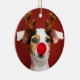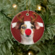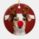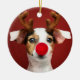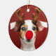 Um cachorrinho bonitinho vestindo galhadas de renas e um nariz vermelho está pronto para dar um monte de beijos de cachorro para o Natal!