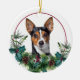 Ornamento De Cerâmica Jack Russell Terrier Evergreen Berry Wreath
