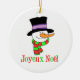 Ornamento Joyeux Noel Snowman. Diga "Feliz Natal" em francês com este adorno de desenho animado bonitinho de boneco de neve. Perfeito para qualquer família francesa durante o Natal.