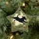 A silhueta de Jack Russell Terrier saltou contra um fundo de coroa de Natal.