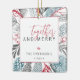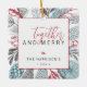 O design moderno apresenta um caprichoso verde de Natal em torno do ornamento com uma sobreposição de caixa branca. Juntos em letras de caligrafia script vermelhas e alegres, nome da família, data em fonte moderna cinza. Adicione sua foto favorita no outro lado.