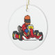 Go Karting design mostra capacete vestindo kart racer dirigindo kart com alta velocidade. Por cartografar e ir para os entusiastas do kart.