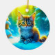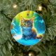 Ornamento De Cerâmica Kitten Doce Brincando na Neve Personalizada