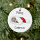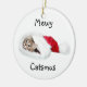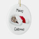 Um gatinho de torbie de cabelos longos num chapéu de Papai Noel aparece porque ela sabe que Papai Noel está chegando em breve ao Enfeites de natal de fotos. O texto pode ser facilmente alterado ou removido