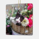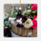 Ornamento De Cerâmica Kitten em uma cesta