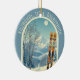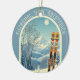 Ornament from a wonderful skiing holiday in the beautiful mountains of Kitzbühel Tirol Österreich. This Ornament features an arch with a stunning blue-grey mountain landscape and retro ski boards in an orange tribal pattern in the foreground. The rest is in a lovely light blue tone with the location lettering in a modern font. The design is a lovely combination of retro and modern, and I hope you enjoy it!