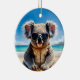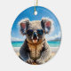 Ornamento De Cerâmica Koala em uma praia arenosa Feliz Natal