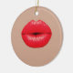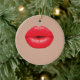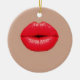 Uma imagem de pop Art de lábios vermelhos brilhantes vomitando-se por um beijo contra um fundo cor de café. Esta design inspira-se na pop, arte moderna, arte gráfica, cultura de hipsteres e é certamente uma obra de arte.