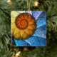 Ornamento Quadrado Laranja Floral Amarelo Abstrato Azul