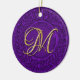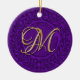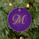 Ornamento De Cerâmica Laurel Wreath with Gold Monogram in Purple