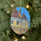 This close-up architectural oil pastel of Lawson Tower in Scituate, Massachusetts provides a sunny, detailed view of the well-known local landmark. The artwork highlights the distinctive turrets and architectural detail accentuated by the late afternoon sunlight. The tower’s light wood shingled facade reflect the late summer sun.