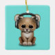 Ornamento De Cerâmica Leão bonito do bebê que veste fones de ouvido