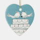 Este ornamento cerâmico do feriado faz um presente de casamento original e uma lembrança estimada para o marido e a esposa novos à exposição na árvore de Natal para os próximos anos. Beijo bonito dos pássaros sobre o bolo de casamento estratificado branco. Um casal doce do newlywed. Personalize seu texto na parte traseira com os nomes da data dos noivos e do casamento. Estes enfeites de natal bonitos são parte de uma coleção de produtos temáticos do casamento do pássaro branco pelo mundo do Doodle de Jenn.