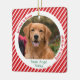 Lembre-se do seu melhor amigo com um enfeite de Natal personalizado com um clássico padrão de caneca de doces vermelha e branca e texto verde. Esse enfeite de festa moderno e fofo de memorial para animais de estimação é uma maneira atenciosa de celebrar a vida do seu animal de estimação e manter sua memória próxima durante as festas de fim de ano. Perfeito para um enfeite com foto de cachorro ou presente de lembrança de perda de animal de estimação, é uma tocante homenagem de Natal no Céu para qualquer amante de animais. Um belo enfeite de condolências para homenagear um animal de estimação querido que está para sempre em nossos corações - uma lembrança duradoura que traz conforto e amor à sua decoração de Natal.