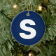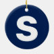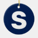 Letra inicial branca | Marinho Indigo Simples Trendy Monograma Cerâmica Ornamento | Moderno | NA MODA | Minimalista | Personalizado | Divertimento | LEGAL