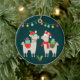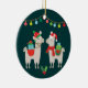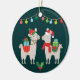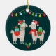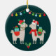 Este Enfeites de natal cerâmico redondo contém lhamas vestindo lenços vermelhos e chapéus vermelhos, e presentes de carregando nas costas.