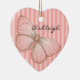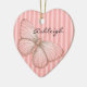Cor-de-rosa Stripes girino moderno nome da borboleta personalizada Enfeites de natal cardíaco