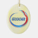 O texto do Geocacher com uma abertura oval azul e vermelha é um design único de presente de geocaching para caqueiros nos aniversários, feriados e eventos de geocaching.