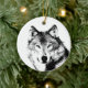 Ornamento De Cerâmica Lobo Negro e Branco