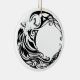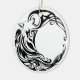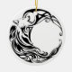 Desenho tribal apresentando um lobo uivando em uma lua crescente.