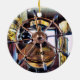 Skyline de Long Beach, Califórnia ao anoitecer no lado frontal deste ornamento lateral. Uma imagem detalhada do volante no navio Rainha Mary no verso. Altere a data do ano para o ano de sua escolha.
