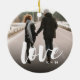Ornamento De Cerâmica Love Script Overlay Foto de Casais personalizados