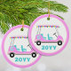 Ornamento De Cerâmica Luzes de Férias de Golfe Rosa Personalizadas