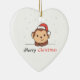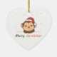 O macaco no Natal com um chapéu de Papai Noel. Animais engraçados com presentes e neve nas férias. Uma doce saudação de Natal. Os macacos são animais bonitos e perfeitos para o Natal.