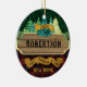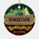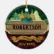 Personalize este ornamento com o seu próprio nome familiar ou o de um amigo, por um enfeite ou presente de inauguração. A design de madeira rústica apresenta xadrezes e pinheiros, para um clássico ornamento rural de floresta. *Se você precisar de ajuda de design ou quiser que este design entre em contato comigo através do Zazzle.