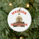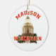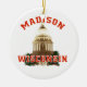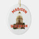 Construção do Capitólio do estado de Wisconsin com madison Wisconsin acima e abaixo dele no vermelho e no preto