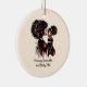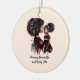 Belo ornamento de uma mãe e filha negras, celebrando amor, família e herança. Um design que honra o vínculo entre mãe e filho. Ideal para o Dia das Mães, aniversários, ou como um presente significativo para mães, filhas e famílias que apreciam a união.