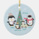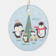 Pinguim adorável para a família de 4. Personalize-o com o nome da mãe e do Pai e os nomes das duas crianças, bem como o ano. presente de excelente!
