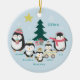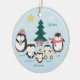 Um adorável ornamento de pinguim para a família de cinco. Personalize-o com a mãe e o nome do Pai e os três nomes das crianças, bem como o ano. O lado inverso é um padrão de "Feliz Natal!" presente de excelente!