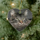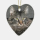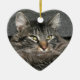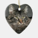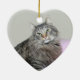 Cinza de Maine Coon gata encarna ornamento cardíaco com uma foto diferente em cada lado