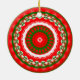 Ornamento De Cerâmica Mandala Vermelha, Branca e Verde