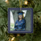 Esse ornamento cerâmico comemorativo apresenta duas fotos do formando e inclui seu nome, ano de escola e graduação. Faz um presente pensativo para qualquer formando. NOTA: a cor do plano de fundo PRETO pode ser alterada clicando na guia PERSONALIZAR. A borda cintilante de prata acentua a maioria das cores escolares. O estilo/cor/tamanho/posicionamento da fonte também pode ser alterado. DICA FOTO/IMAGEM: Para obter resultados mais rápidos/melhores, escolha uma foto com o assunto no meio e/ou faça um pré-recorte da foto em forma quadrada ANTES de fazer o upload e ela preencherá o espaço de fotos fornecido perfeitamente.