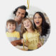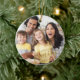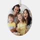 Crie um ornamento de férias de manutenção da família com 2 fotos com um título de tipografia de script manuscrito FAMILY em uma cor de ouro editável personalizada com um nome de família e um ano. Comece ou mantenha uma tradição de ornamento familiar ou dê presentes à família e aos amigos. Faz um presente excelente para compartilhar com a família e os amigos. ALTERAÇÕES: Você pode alterar a cor da camada de fontes para facilitar a leitura da imagem clicando na guia PERSONALIZAR MAIS. Para obter modificações ou assistência, entre em contato com o designer ANTES DE PEDIR por meio do Zazzle Chat ou makeitaboutyoustore@gmail.com.
