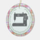 Este ornamento de feriado personalizado foi projetado para trazer alegria e felicidade àqueles que adoram costuras! Com uma máquina de costura e um campo de tipografia personalizável que diz: "Que seus pontos espalhem alegria e felicidade para todos! Feliz feriado!" você pode adicionar seu toque pessoal. Comparado a um elegante e colorido fundo de xadrez, este é um presente único e ponderado para alfaiates, mantas de retalhos, ofícios e hobbistas na sua vida. Personalize a mensagem e espalhe a alegria, um ponto de cada vez! © Wafa Y. Dahdal - Todos os direitos reservados.