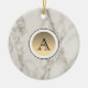 Enfeites de natal simples, elegante e branco de mármore com monograma de folha de ouro personalizado no meio.