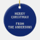 Adicione um toque selvagem à árvore de Natal com este ornamento personalizado apresentando uma ilustração de tatu em azul marinho contra um fundo colorido de creme. O lado reverso coordenador apresenta sua própria mensagem personalizada em creme contra um fundo azul marinho. Crie um presente de Natal único para fãs de tatus.