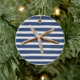 Ornamento De Cerâmica Marinho Blue e White Stripes Starfish