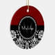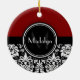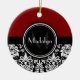 Ornamento De Cerâmica Maroon Black White Damask Monograma - Letra Monogr