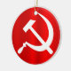 Martelo e gelo num círculo vermelho brilhante isolados sobre um fundo branco.