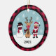 Este Enfeites de natal engraçado e fofo tem um boneco de neve, renas e Papai Noel vestindo máscaras. Há um padrão de xadrez de búfalos e lindas cores vermelha, branca, preta e bronzeada. Pode ser personalizado com o ano. As costas têm um padrão de xadrez de búfalo com flocos de neve.