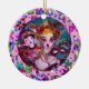 Pintura vibrante e artística lunática com confetes coloridos. O amor Mythical entre o Harlequin e a pintura aquilégia, acrílica inspirou das máscaras da pena e do dell'arte Venetian de Commedia - Veneza. Cores verdes amarelas cor-de-rosa roxas brilhantes.