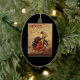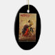 Ornamento da árvore de Natal oval de um poster de viagens antigo do México com um matador vestido de amarelo com uma capa vermelha que combina um touro preto. Personalizável. Este é um poster antigo com um ligeiro dano.