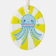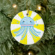 Medusa azuis de flutuação bonitos no estilo do kawaii com bolhas.