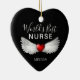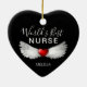 Melhor Enfermeira Medicina Vermelha Coração Personalizada Guarnição CerâmicaAmbos os lados do ornamento em forma de coração desenhado com "A Melhor Enfermeira do Mundo" em letras de escrita de caligrafia branca e asas de anjo branco estendidas do coração vermelho no centro. Personalizado com o nome da enfermeira na área inferior. Faz uma enfermeira excelente ter uma ideia de presente.